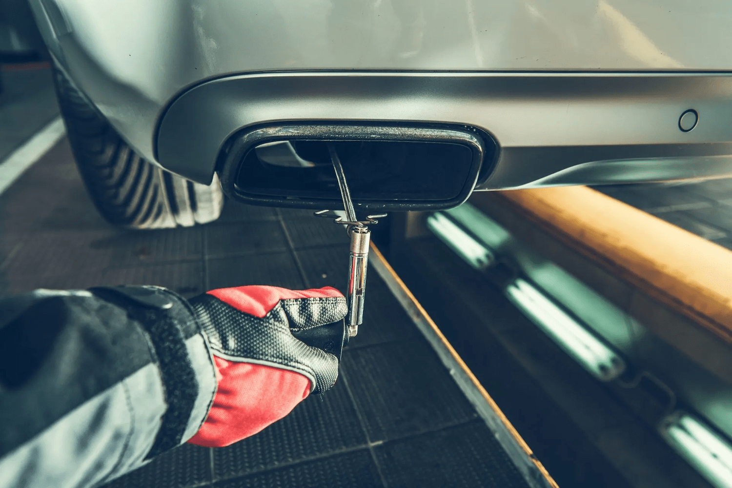 Finally, we inspect the tailpipe emissions using the testing probe to check your vehicle's compliance with emissions standards.